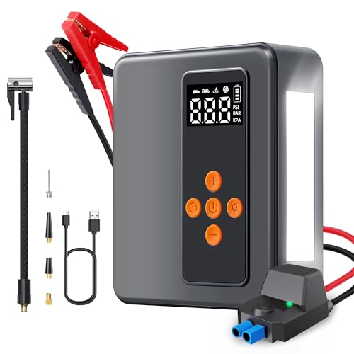 - 【Super High-Capacity & Efficient Jump Starter】Applying newest SQAP battery technology, it bursts with 150 times discharge performance, with unrivaled 8000A peak current,the device can restart a 12V vehicle in a few seconds (24V vehicle can be restarted by connecting 2 sets of this device in parallel), (All Gas/16L Diesel), and it can work normally at -20℃~60℃.