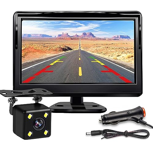 - 【HD 5in Monitor 】Backup camera for car with HD 5 Inch 800*480 Resolution LCD display monitor, High definition resolution that offers clear picture quality even at night, The monitor of back up camera is equipped with bracket, You can rotate it 360 degrees,can be mount the monitor on dash or windshield.