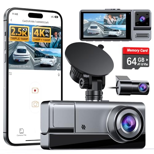 Icesky 3-Channel 2.5K Dash Cam | Front + Rear + Inside | WiFi 6, 4K/2.5K Recording, -