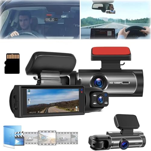 Sherum Dash Cam, Shirem Dash Cam Front and Rear, Shirem Dash Camera for Cars, Autopulsex Dash Cam, Dashcam Front and Rear Camera,1080p Night Vision Car Driving Recorder (Front/Inside+32G Card)