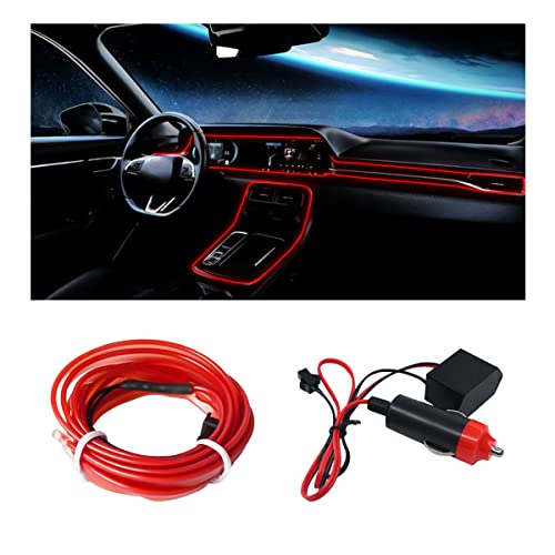 EL Wire Car Interior LED Strip Lights, 16FT Neon Light with Sewing Edge for Auto Cigarette Lighter, Electroluminescent Ambient Lighting Kits with Fuse Protection, Car Decoration Accessories (Red)