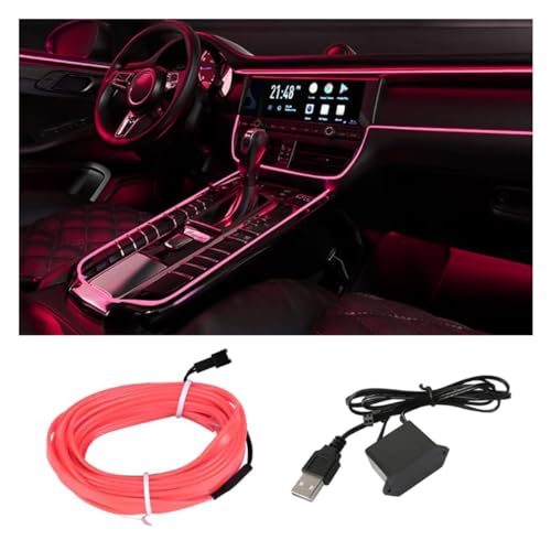 EL Wire Interior Car LED Strip Lights, USB Car Neon Light Strip with Sewing Edge, 16FT Neon Light 5V with Fuse Protection, Electroluminescent Car Indoor Decorations (Pink)