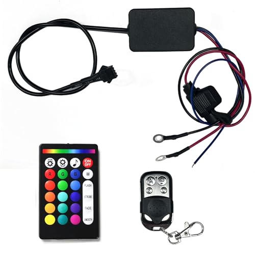 - 【Dual Remote Control】Motorcycle LED Underglow Kit with IR/RF dual wireless remote controller,18 colors static color,22 dynamic modes you can DIY. 2 color cycle modes, 3 flashing modes and 1 fading mode with adjustable brightness you can change.