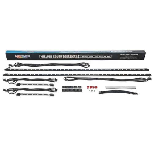 - LEDGlow 2pc Add-On Interior Footwell & 2pc Canopy LED Lighting Kit Upgrade Rounds Out the Multi-Color Lighting By Shining Ultra-Bright Accent Neon Lighting on the Footwell & Seats of Your 4-Seater Golf Cart, in Addition to the Previously Installed 4pc Underbody Lights