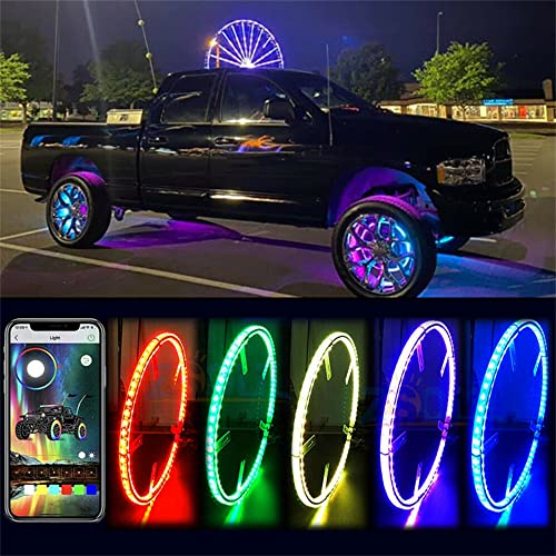- 【Package including】4PCS RGB Wheel Ring Lights with Wires, 1PC Control Box ,Wiring instructions , 20PCS Mounting Brackets