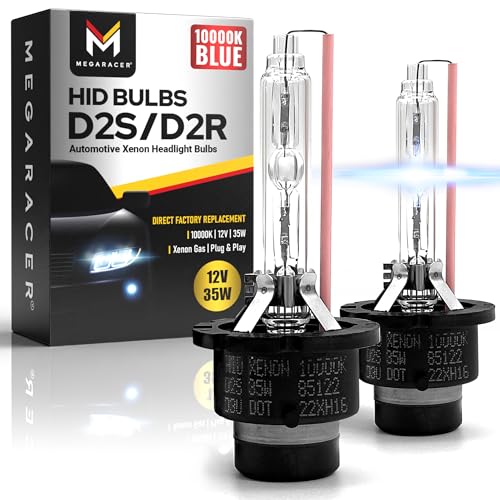 - 【Ultra-Bright Light Upgrade】Our D2S HID headlight bulbs emits 10000K Blue White light for enhanced visibility and deliver up to 4000 lumens. Designed for fast warm-up, they improve irradiation distance and brake reaction time, ensuring safer driving.