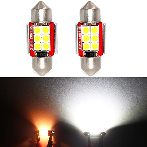 - (Pack of 2)Length: 31mm; Color: 6000K Xenon White; Working voltage: 10V~30V(fits 12V/24V vehicles); Current: 0.15A; Power: 1.8W/bulb; Lumen:500lm/bulb, each DE3175 LED bulb equipped with 6 pieces high power 3030 LED chip