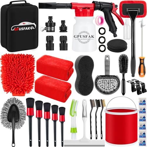 Buy 27Pcs Car Wash Cleaning Kit with Foam Gun, Car Detailing Kit, Auto Detail Supplies Tools With Wheel Drill Brush Set, Car Polishing Kit, Car Detailing Brush Set for