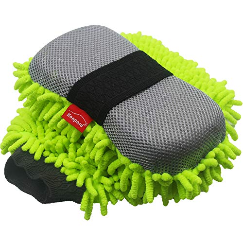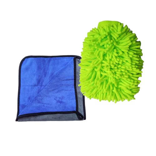 Buy HeGangLy 1Pack Car Wash Mitt and Towels,Chenille Car Wash Mitt,Polishing Waxing Drying Auto Towel,Home Cleaning Cloth, Good Tools for car Cleaning and Home Cleaning(Bright Green/Grey-Blue): Sponges & Mitts