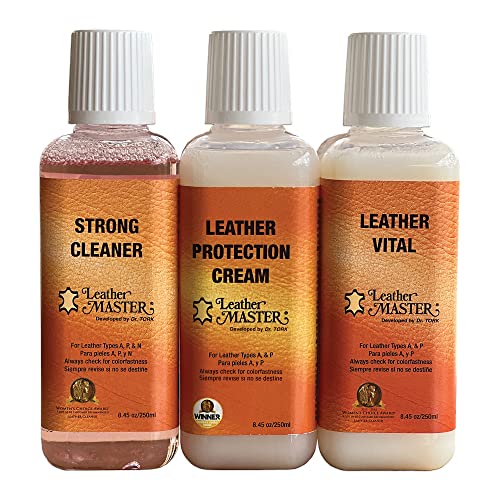 Buy Leather Master Strong Leather Care Bundle - 250 ml Exceptional Leather Care Stain Remover, Protector and Polish Kit. Made to Clean Leather Accessories, Auto Detailing, Furniture, Handbags and