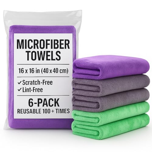 Buy WEAWE Microfiber Towels Gray for Cars - 6 Pack, High & Short Pile Micro Fiber Cleaning Cloth for Car Washing Drying & Auto Detailing, Water Absorption Lint Free