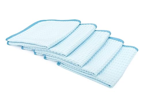 Buy The Rag Company - Dry Me A River - Professional Korean 70/30 Blend Microfiber Waffle-Weave Drying & Detailing Towels, Soft Suede Edges, 390gsm, 16in x 16in, Light Blue