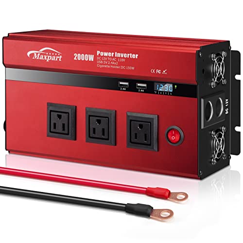 Buy Maxpart 2000W Power Inverter 12v DC to 110v 120V AC Converter with 3 AC Outlets,2000 Watts Car Inverter for Vehicles Truck with 2 USB Port,Solar Setup Power Inverter