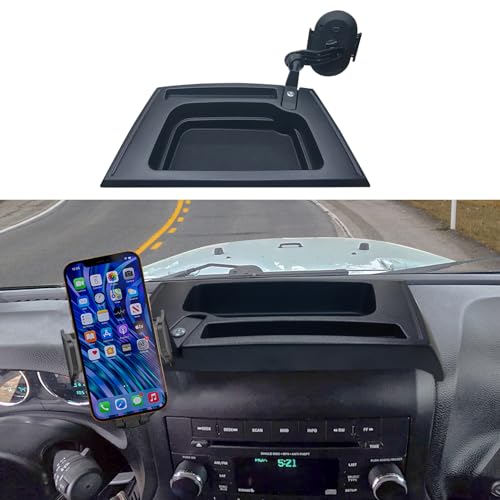 JeCar Dash Phone Holder Dashboard Cellphone Clamp Upgrade Alluminum Alloy Ball Mount with Storage Tray Interior Accessories Compatible with RAM Truck 2018-2022, Do Not Fit 12-inch Screen Model :