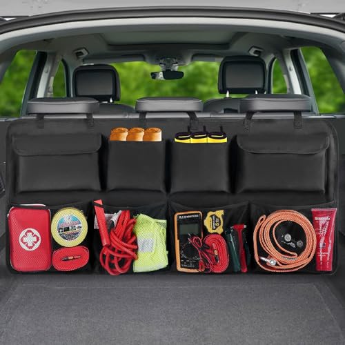 Buy AUCELI Car Trunk Organizer, Backseat Hanging Large Storage with Adjustable Straps, Waterproof Collapsible Cargo Bag with 4 Pockets, Sturdy Space Saver Frees Trunk Floor for SUV, Truck, MPV: