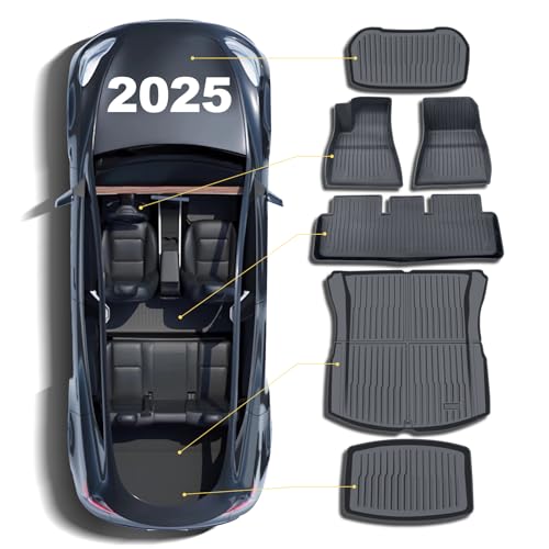 Buy 3W Tesla Model Y Floor Mats, All-Weather TPE Floor Liner Compatible for Tesla Model Y 2020-2024, Full Set Black Floor Mats, Cargo Liner and Rear Seat Back Mats