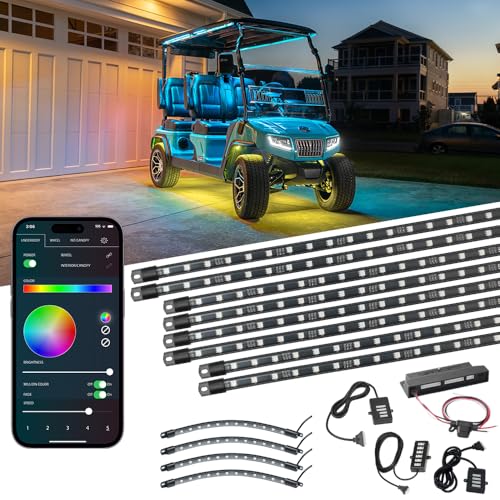 Buy LEDGlow 12pc Bluetooth Million Color LED 4-Seater Golf Cart Underglow Accent Neon Lighting Kit with Canopy & Wheel Well Lights - Smartphone App - Fits 12-Volt Powered Extended