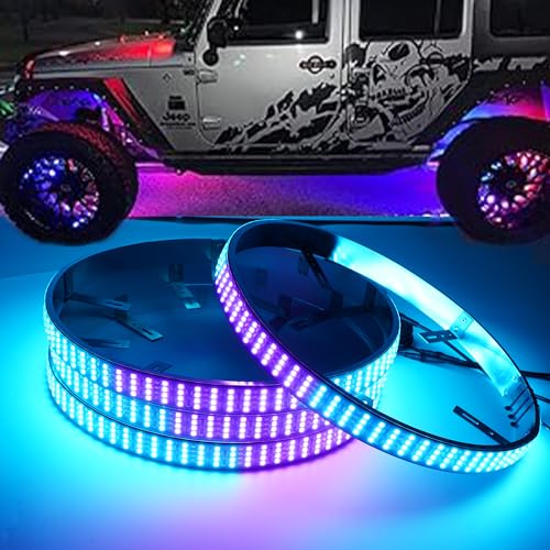 Buy Beatto 17inch Double Row Wheel Ring Light Kit w/Turn Signal and Braking Functionand Can Controlled by Remote and app Simultaneously with Lock Function: Tire Lights - ✓ FREE