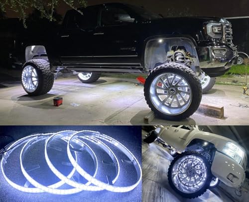 Buy 4X Double Row Tire Lights 17.5" Dual LED Wheel Rim Lights Pure White for Truck Cold White Bluetooth APP Control Music Dance Strobe Flashing Rings: Tire Lights -