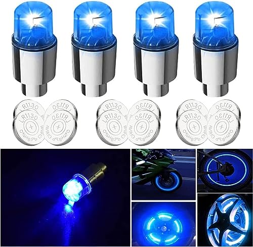 Buy FICBOX 4 Pack Tire Valve Lights,Car Tires Bike Truck Golf Cart Wheel Assemblies Light up Air Neon Bicycle Motorcycle Tyre Valve Lights with 12 Extra Batteries (Blue): Tire
