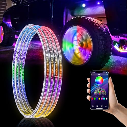 Buy 17.5" Quad Row Brightest LED Wheel Rim Lights High Lumens for Car Truck Off-Road Multi-Color Chasing Dynamic Tire Well Lighted Wheel Bluetooth + Remote: Tire Lights - ✓