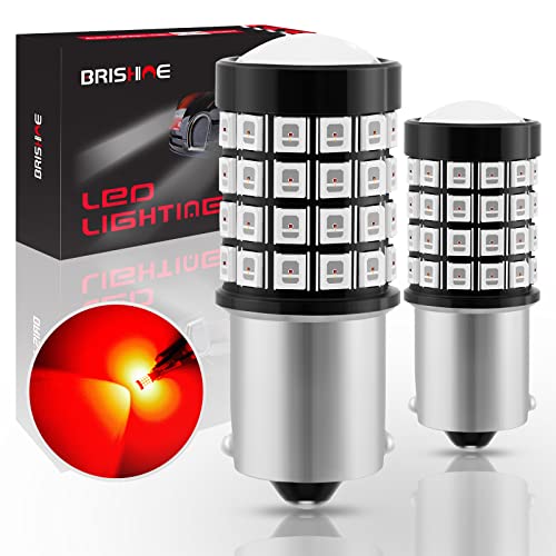 BRISHINE 1156 1073 1141 7506 BA15S LED Flashing Strobe Blinking Brake Light Bulbs, Super Bright 52-SMD Chipsets LED Bulbs with Projector for Tail Stop Lights, Brilliant Pure Red(Pack of