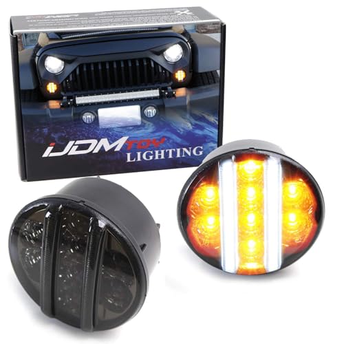 Buy iJDMTOY Smoked Lens LED Front Turn Signal Lamp Assembly Compatible With Jeep 2007-17 Wrangler (White LED Vertical Bars For Driving/DRL & Amber LED Dots For Turn Signal Lights):