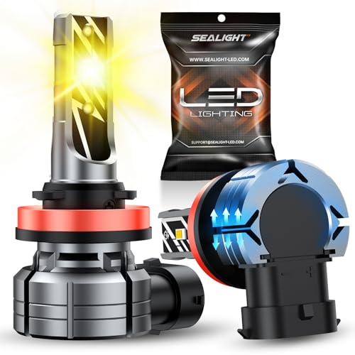 SEALIGHT H11 Fog Lights Bulbs or DRL 16000LM Brightness, H11 H8 Fog Lamps Bulb 6000K White Strong Penetration, 2024 Upgrade Liquid-cooled Copper Tubing H16 Fog Lights for Truck, Pack