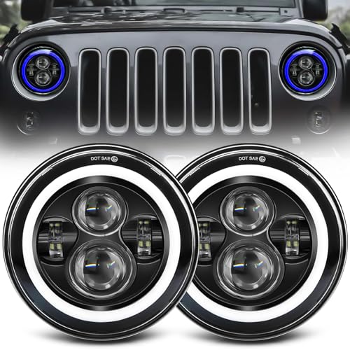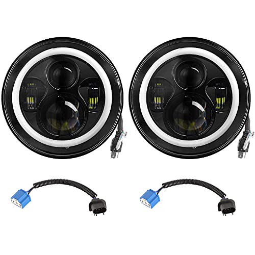 Buy Moclever Round LED Headlight Halo, 2PCS 7inch 6000LM LED Headlamp Offroad Light Angle Eyes Compatible with Jep Wrangler TJ JK CJ w/H4 to H13 Adapter Plug and Play: