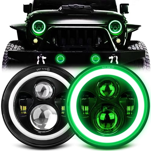 Buy MGLLIGHT 7 Inch Halo LED Headlight with Green DRL Amber Turn Signal Light DOT Approved 7 inch led headlight Compatible with Wrangler Halo Headlights JK TJ LJ CJ,
