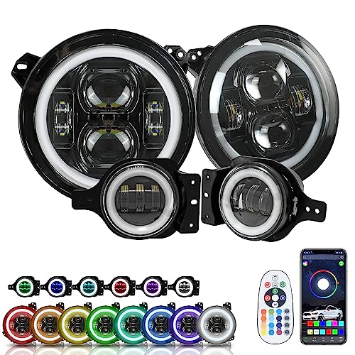 Buy SUNPIE 9 Inch RGBW Halo Head lights with Fog Lights Combo Compatible with 2018 2019 2020 2021 2022 2023 JL JLU Compatible with 2019 2020 2021 2022 2023