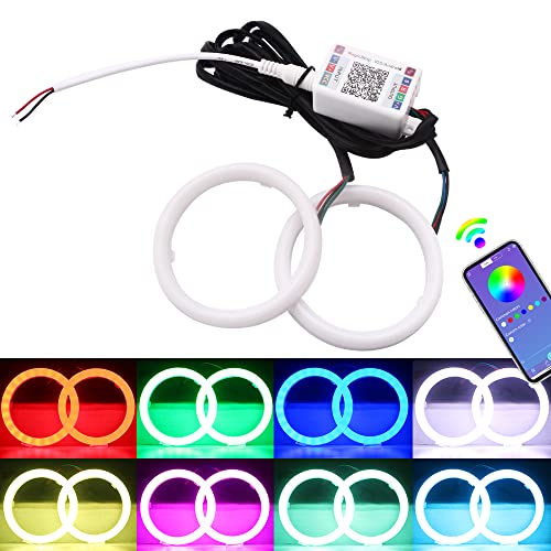 Buy EverBrightt 1 Set 70MM RGB Angel Eyes LED Halo Rings for Car Lamp Daytime Running Light COB Chips Multil-Color Circle Ring Mobile App Control with PVC Housing DC