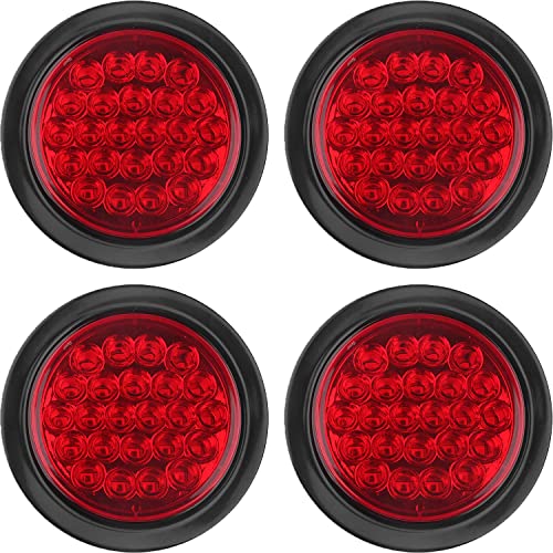 Buy 4Pcs 4 Inch Round LED Trailer Tail Lights Red 24 LED Waterproof, 4 Inch Round Led Stop Turn Brake Tail Lights Flush Mount for Trucks RV Include Lights