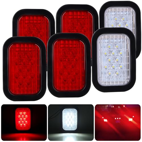 Buy Konrali 6Pcs 5x3 Led Tail Lights, 4 Red + 2 White 3x5 Rectangle Led Lights 12 LED Stop/Turn/Tail Backup/Reverse Tow Truck Semi Trailer CM Flatbed Hitch Mounted RV