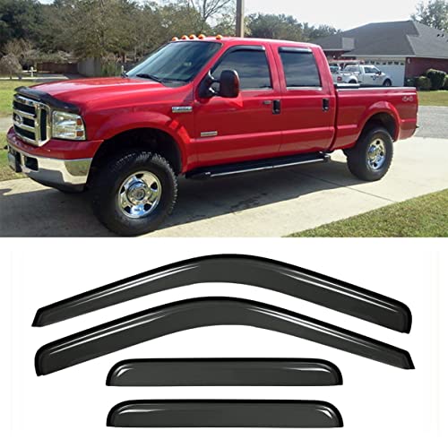 Buy Kucaruce 94953 Side Window Visor Wind Vent Deflector for 1999-2016 ford F-250/F-350/F-450/F-550 Super Duty SuperCrew Cab with 4 full size doors,4pcs Outside Mount Tape-On Shade Sun Rain Guards