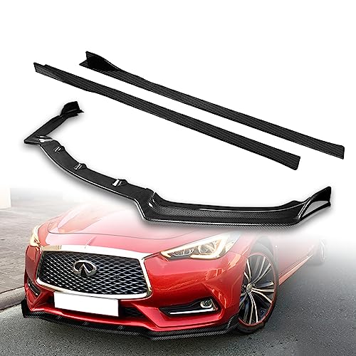 Q1-Tech 9-Piece Front Bumper Lip Kit & Side Skirt Extensions Diffuser Set compatible with 2017-2020 Infiniti Q60 Coupe, Front Bumper Lip Spoiler Air Chin Body Splitter ABS, Painted Carbon