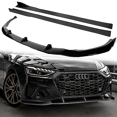 Q1-TECH, 9PCS Front Bumper Lip & Side Skirt Extensions Diffuser Compatible with 2020-2022 Audi A4 / S4 S-Line, Front Bumper Lip Spoiler Air Chin Body Splitter ABS (Painted Black)