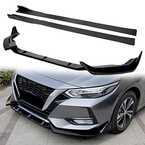 Q1-TECH, 9-Piece Front Bumper Lip & Side Skirt Extensions Diffuser Compatible with 2016 2017 2018 2019 Nissan Sentra, Front Bumper Lip Spoiler Air Chin Body Splitter ABS (Matt Black)