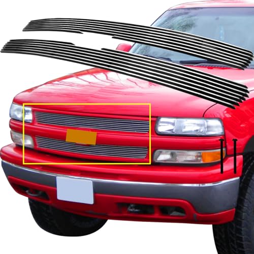Buy APS Compatible with Chevy Silverado 1500 HD 2006 & 05-06 2500HD 3500 & 07 Classic Models Main Upper Top Bumper Stainless Steel Black 8x6 Horizontal Billet Front Grill